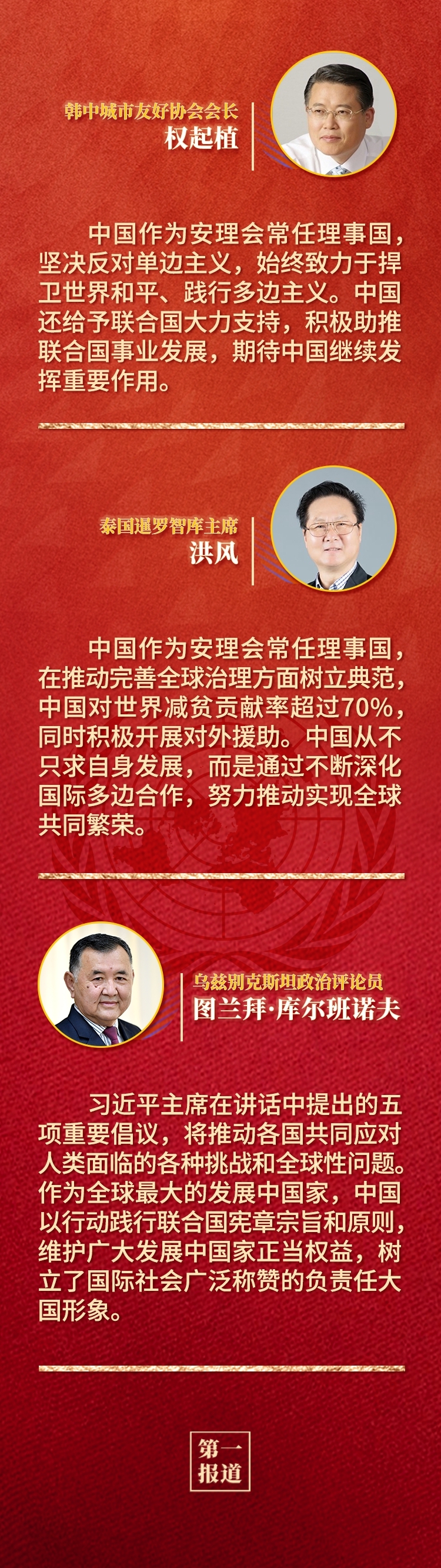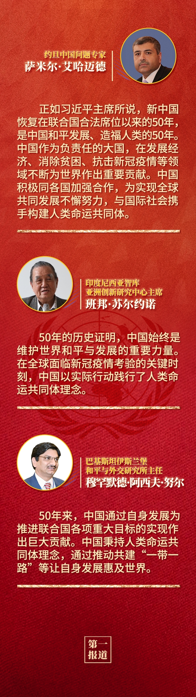 多国人士认为,中华人民共和国恢复联合国合法席位是世界和联合国历史上的一个大事件,习近平主席的重要讲话回顾了中国和平发展、造福人类的50年,为实现世界永续和平发展提出重要倡议,为全球共同推动构建人类命运共同体注入新的强大动力。