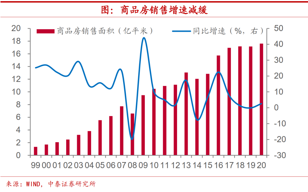 第一,地产投资增长趋于回落。人口红利的消退和城镇化进程的放缓,意味着房地产高速增长的时代已经过去。而房住不炒的政策调控基调和以房产税为代表的长效机制逐步建立,使得房地产行业的发展更为规范。我国商品房年销售面积在达到17亿平方米之后增长速度趋于减缓,近年来保持在个位数的增速水平,这决定了房地产投资、新开工等行业指标很难长期处于双位数增长的状态。社会资源特别是信贷资源向房地产行业投放比例的约束不减,使得明年地产投资增速仍处于回落通道。