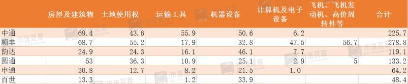 ▲2020年底各大上市快递公司主要固定资产(单位:亿元)