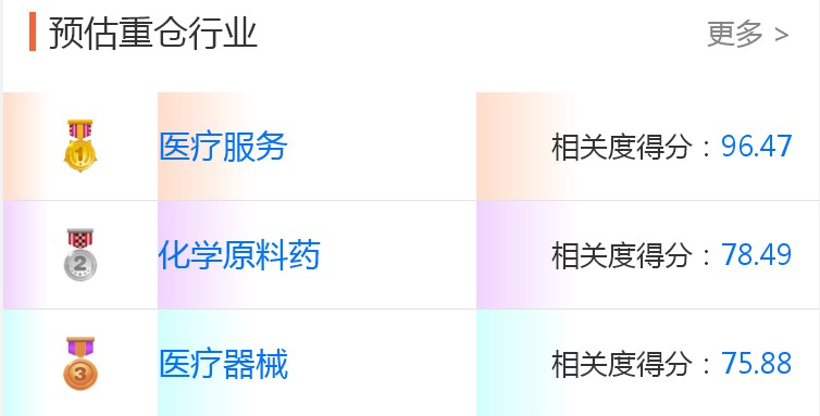 今年三季度,医药女神葛兰管理的中欧医疗健康混合基金对其持仓的医药股基本上都在大幅增持,就增持股数而言,爱尔眼科增持数量最多,泰格医药三季度也获葛兰增持1369.42万股,通策医疗获其增持441.17万股,片仔癀也获其增持145.45万股。重仓行业集中在医药生物板块,根据预估重仓行业数据,重仓前三甲分别是医疗服务、化学原料药以及医疗器械。