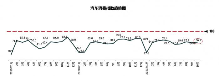 从消费端来看,10月份汽车消费指数为66.1,汽车市场基本处于供给决定需求的状态,整体市场需求持续延迟累积。