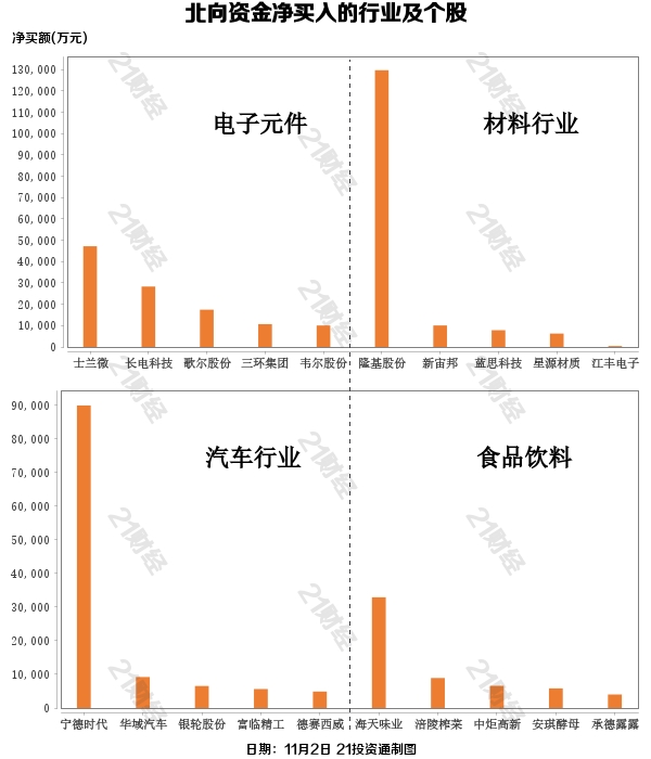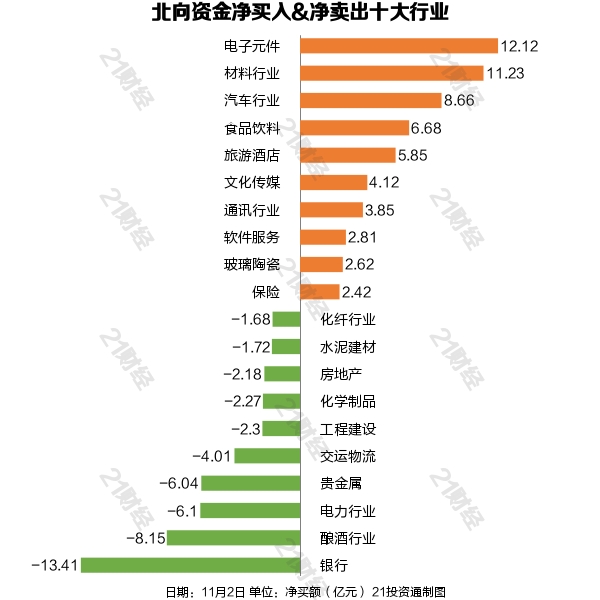据21投资通(微信号ID:touzit21)智能监测,11月2日,北向资金净买入23.65亿元,其中沪股通净买入13.48亿元,深股通净买入10.17亿元。