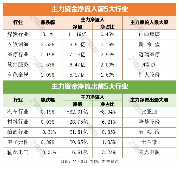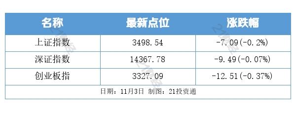 11月3日,沪深两市成交额连续第9个交易日突破万亿,但较昨日缩量明显。盘面上,元宇宙、养殖业、煤炭、医疗器械等板块涨幅前列,培育钻石、中船系、贵金属、HIT电池等板块跌幅居前。