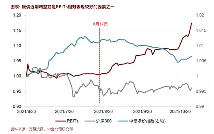 对REITs上市以来出现上述表现的原因,中金公司判断可能是因为三个原因:首先,8月17日之前的阴跌以及成交低迷可能由于国内REITs还在试点初期,机构投资者对该产品特性仍不熟悉,不少处于观望阶段,同时部分机构的REITs交易系统仍处于搭建阶段,从而造成买卖盘力量不足;此外,公募基金作为海外持有REITs的主力,目前参与REITs仍受到一定限制,也是前期成交低迷的一方面原因。8月18日之后的上涨以及成交活跃可能在于,部分机构REITs交易系统已搭建完毕,逐步进入到REITs的配置流程;同时,国内股债市场在该段时间均出现一定调整,作为替代型配置资产的REITs在经历了前期估值下杀后,配置价值凸显,相比股债资产可能更具吸引力;最后,在第二批REITs即将上市之际,投资者对REITs市场的关注度有所上升,可能也是REITs近期表现良好的推动因素。