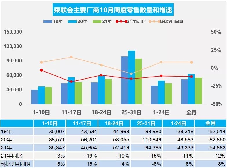 初步估算,今年10月乘用车零售总体同比下降12%,走势较平淡。