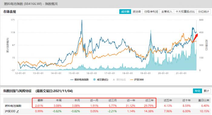 在政策支持下、受益于新能源大发展的东风,源燃料电池板块悄然走强。11月4日,万得燃料电池指数收涨2.61%,年初至今上涨29.53%。