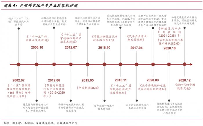 我国早在“十五”期间即将氢燃料电池汽车确立为新能源汽车发展的主要技术路线之一。近年来,国家政策对燃料电池汽车的关注度快速提升,赋予了氢能及燃料电池产业更高的战略地位,燃料电池汽车产业已逐步由基础布局向市场化、规模化方向发展。
