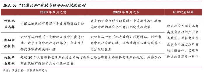 “以奖代补”政策实施或为氢能车行业转折点。2021年9月,财政部等五部委联合发布《关于开展燃料电池汽车示范应用的通知》,确定北京市、上海市和广东省城市群作为全国首批示范城市群,启动实施燃料电池汽车示范应用工作,另外新政将促进上游技术突破、驱动下游应用及基础设施发展,真正惠及产业链上下游玩家。国联证券认为“以奖代补”政策的实施或将成为氢燃料电池汽车产业重要的转折点,政策推动下核心技术的有效突破将为未来规模化降本打牢坚定基础,避免技术卡脖子而带来产业发展停滞。