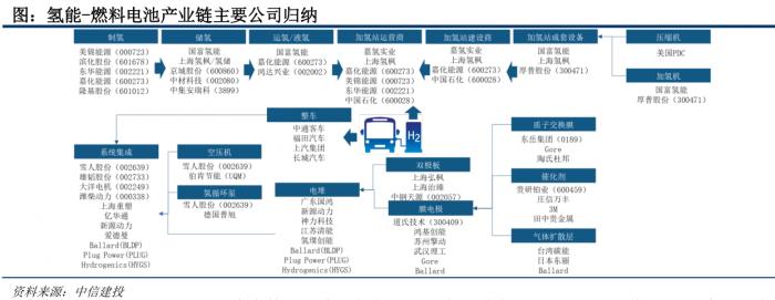 中信建投:在产业发展仍处于导入期,竞争格局远未明朗的当下,产业链中两部分环节重要性相对更高:具备资源优势,可以降低氢价的氢源供给标的(风光发电、化工企业为主);具有技术优势,在技术门槛最高、成本绝对值和成本下降空间最大的膜电极- 电堆-氢发动机系统集成领域、高压氢气瓶领域和氢气加注设备领域,具有竞争力的氢能应用、储存标的。