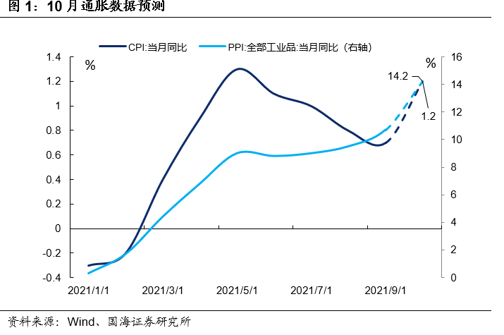 事件:10月份,煤炭等大宗商品价格上涨明显,我们预测10月份PPI同比可能高达14.2%,刷新历史记录。市场担忧如此高的PPI增速,是否会向近期以及2022年的CPI明显传导。对此我们做出如下分析:
