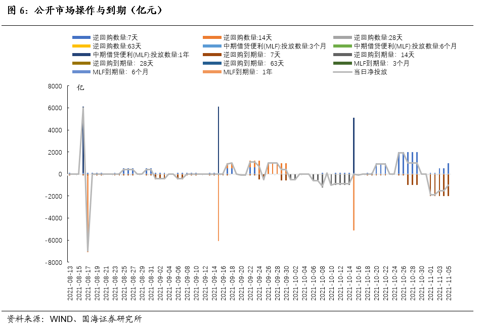 央行恢复百亿逆回购投放量,回笼上月末释放的流动性。本周央行共投放2200亿元7天逆回购。其中周一(11月1日)有100亿元7天逆回购,周二(11月2日)有100亿元7天逆回购,周三(11月3日)有500亿元7天逆回购,周四(11月4日)有500亿元7天逆回购,周五(11月5日)有1000亿元7天逆回购。本周共10000亿元央行逆回购到期,全口径公开市场操作实现净回笼7800亿元。