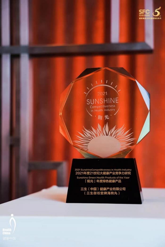 凭借在中医养生方面的突出表现,“三生御坊堂牌海狗丸”入选21 世纪新健康研究院发布的21世纪大健康产业竞争力研究“阳光”荣誉榜,荣获“年度绿色健康产品”称号。这是三生(中国)健康产业有限公司旗下获得该称号的第二款产品。
