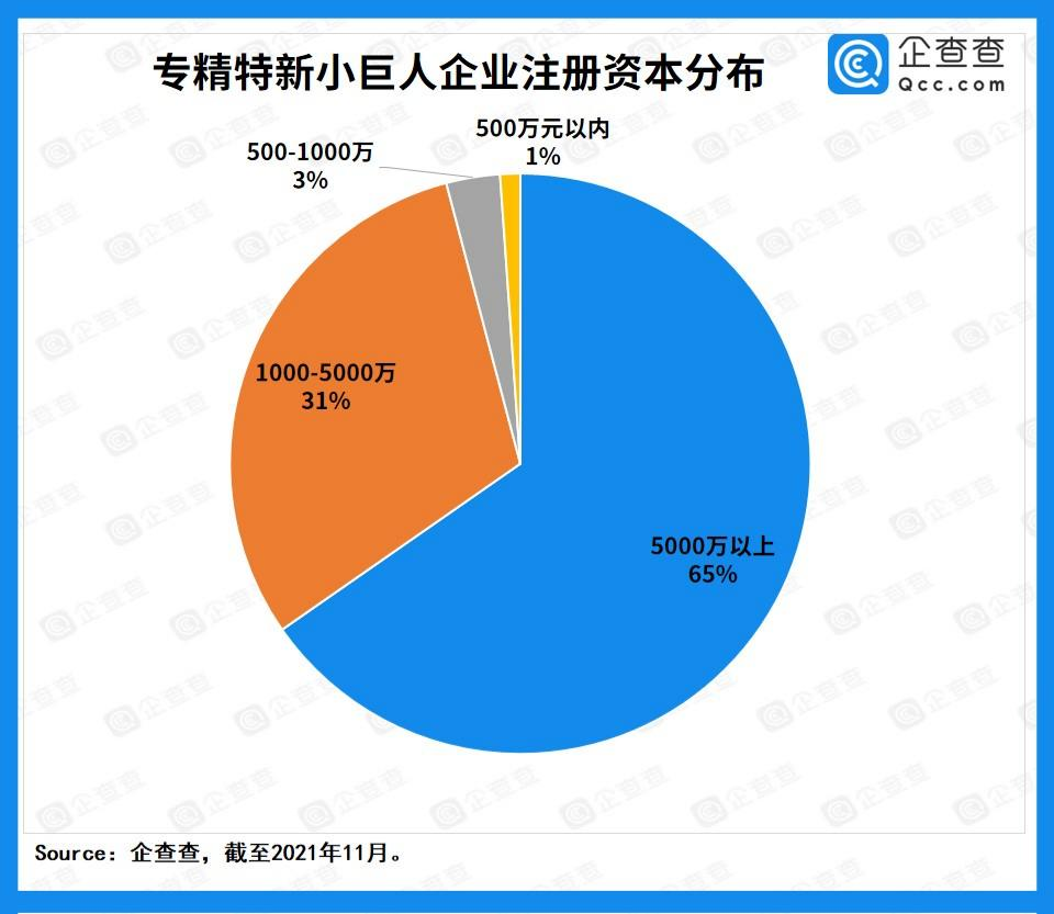 3、65%的“小巨人”企业注册资本超5000万,业内基础稳固