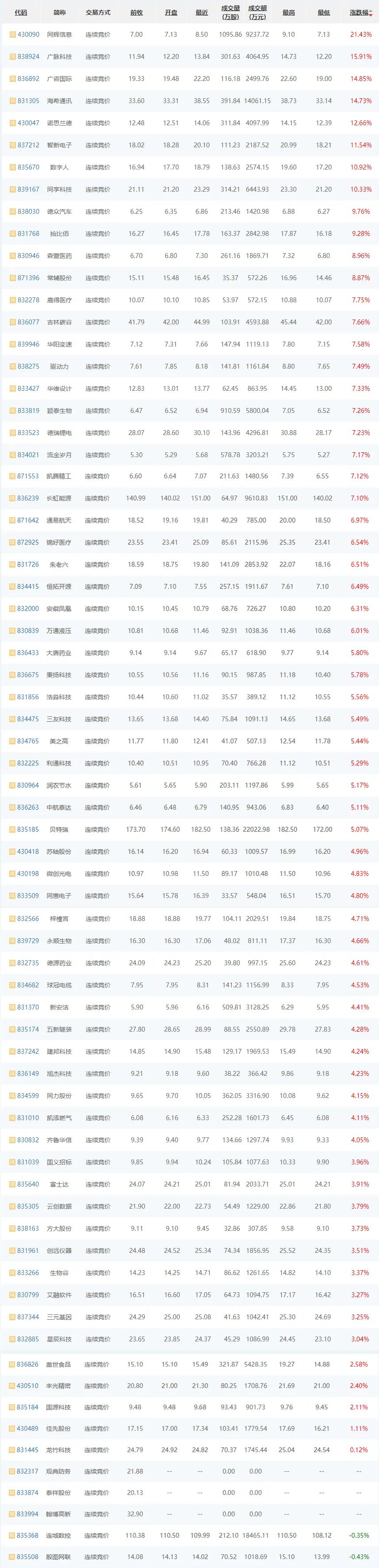 截至11月8日收盘,今日成交金额为29.76亿元,精选层成交金额为18.64亿元,创新层成交金额为9.39亿元,基础层成交金额为1.73亿元;今日成交股数为28078.03万股,精选层成交股数为10991.87万股,创新层成交股数为10925.47万股,基础层成交股数为6160.69万股。