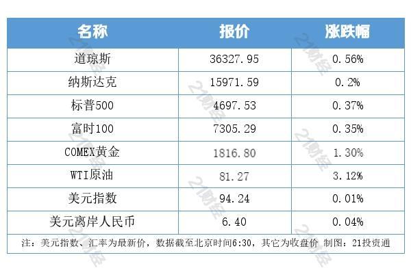 上周五,道指涨幅0.56%,报36327.95点,周涨1.42%;标普500指数涨幅0.37%,报4697.53点,周涨2.00%;纳指涨幅0.20%,报15971.59点,周涨3.05%。