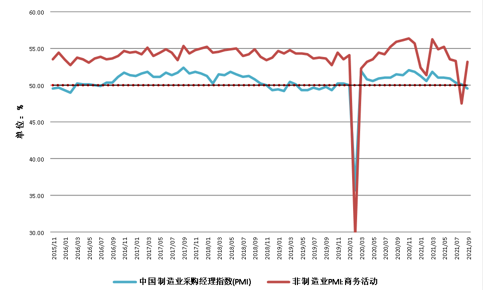 10月PMI继续回落至49.2%,比9月份又下降0.4个百分点,继续低于临界点,近几个月制造业景气度减弱,增速放缓较为明显。非制造业商务活动指数为52.4%,比上月下降0.8个百分点,但仍高于临界点,非制造业继续保持一定程度扩张。10月份PMI指数在荣枯线以下继续回落,表明经济下行压力有所加大。当前内需不足,能源、原材料供应阶段性紧张等问题对企业生产活动的制约增强;应尽快采取有效措施,提振内需、畅通供应链、产业链,切实改善企业的生产经营条件,着力巩固经济持续恢复向好的基础。