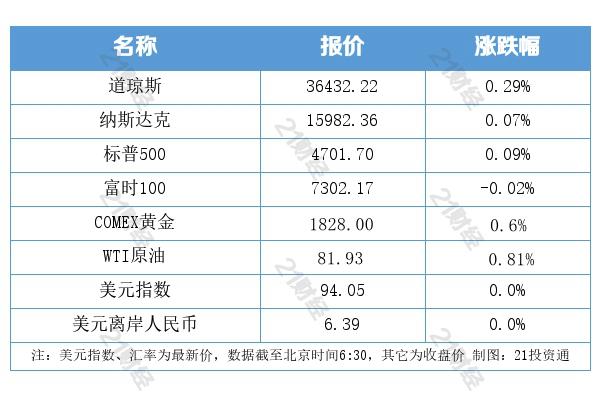 1、美国三大股指集体收涨。道指涨0.28%,标普500指数涨0.09%,纳指涨0.07%。三大股指均连涨八日,收盘价均创新高。