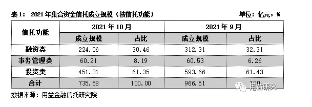 11月9日,记者从用益金融信托研究院处获悉,10月集合信托发行规模环比减少28.74%,成立规模环比减少23.89%。