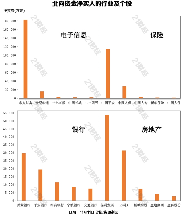 据21投资通(微信号ID:touzit21)智能监测,11月11日,北向资金净买入86.1亿元,其中沪股通净买入42.92亿元,深股通净买入43.18亿元。