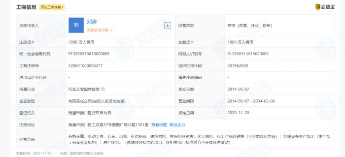 启信宝数据显示,南通瑞豪国际贸易有限公司是一家由两位自然人王伟民和刘涛控制的公司,主要从事汽车及零配件批发,注册资本为1000万的小型企业。