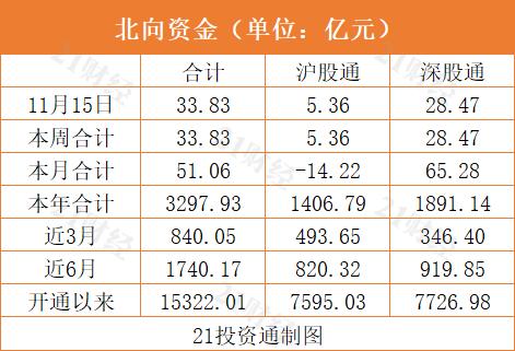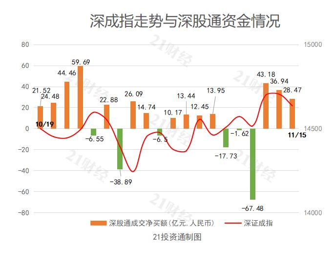 据21投资通(微信号ID:touzit21)智能监测,北向资金全天合计净买入33.83亿元,其中,沪股通小幅净买入5.36亿元,深股通净买入28.47亿元。截至目前,北向资金已连续三个交易日净买入,累计净买入额达156.2亿元。
