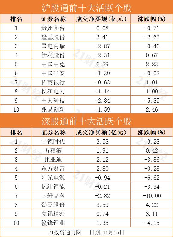 今日十大活跃个股方面,中国中免、宁德时代、劲嘉股份分别获净买入6.29亿元、3.59亿元、3.58亿元。国电南瑞净卖出额居首,金额为2.87亿元。