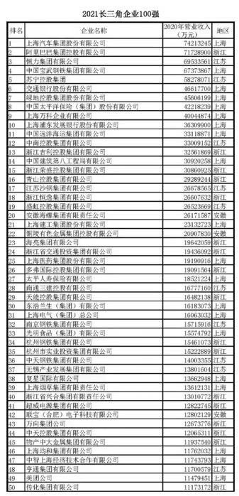 附:《2021长三角企业100强》