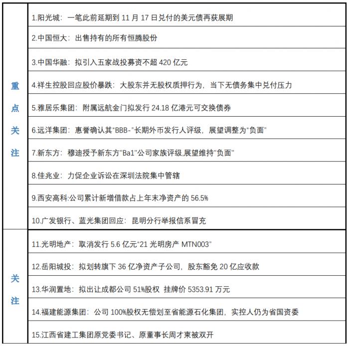 1.阳光城:一笔此前延期到11月17日兑付的美元债再获展期