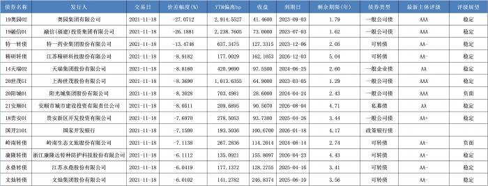 11月18日,光明房地产集团股份有限公司公告,由于近期市场波动较大,拟取消“21光明房产MTN003”的发行,调整后的发行安排另行公告,如有最新进展,本公司将及时进行披露,提请投资者关注。该债采用发行金额动态调整机制,基础发行金额为1.00亿元,发行金额上限为5.80亿元,期限3年。今日发行人公告,实际发行金额调整为5.6亿元。