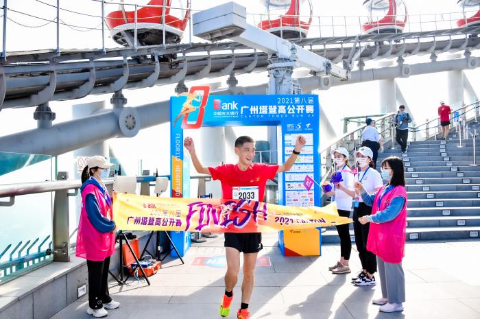 11月20日,由广东经济科教频道与广州塔联袂打造,由中国光大银行广州分行特别支持的“2021第八届广州塔登高公开赛决赛”在二沙岛艺术公园鸣枪开跑。本届赛事再度升级、跨海而来!首创“双地标、双赛道”——选手们在登塔前穿越海心桥、纵享珠江两岸美景,一路乘风破浪、快乐向上;“阿尔法极限赛道+核心筒赛道”软、硬两大赛道同时开跑,为选手们带来无与伦比的登高体验!经过激烈的比拼,最终韦义庞以17分17秒最快登顶城市之巅,相当于9秒跑一层,勇夺第八届广州塔登高公开赛男子组冠军,瞿尚薇以20分10秒获得女子组冠军。