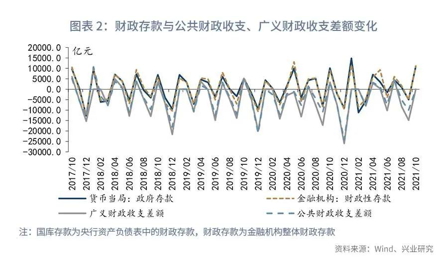 广义财政收支(包含一般公共预算、政府性基金预算、国有资本经营预算)与净融资(国债净融资、地方债净融资)是财政存款变化的影响拆解分项,财政存款变化与广义财政收支差额的变化密切相关。财政的投放会对当期流动性产生影响,且有一定的季节性特征。因此,我们基于目前的预算执行进度,对年末财政投放空间进行测算。