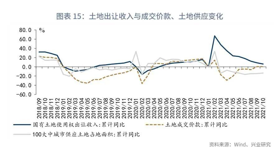 政府性基金预算收入当月同比增速较上月略微下降,支出增速降幅收窄。2021年10月全国政府性基金预算当月收入6441亿元,当月同比-13.4%,前值-10.4%,两年平均累计同比增速由正转负,录得-4.4%。10月政府性基金预算收入同比减少997亿元,而与此同时,地方政府土地使用权出让收入同比减少868亿元。