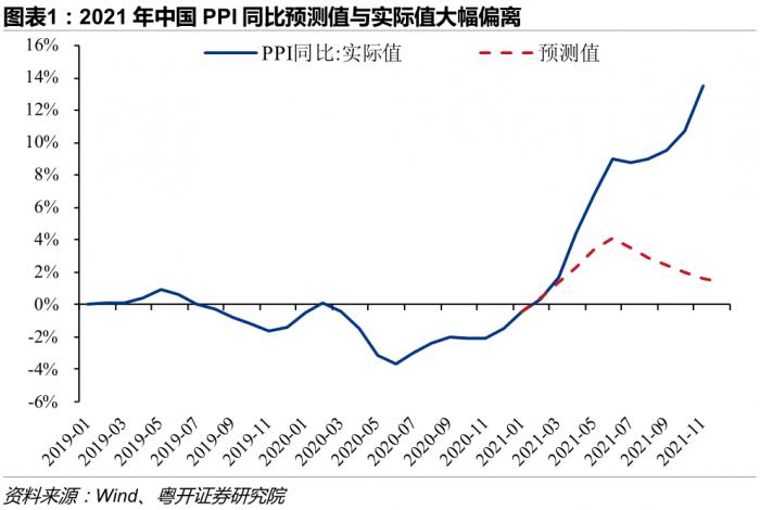 去年底市场普遍预测:2021年通胀将温和回升。然而市场显著低估2021年中国PPI同比。2021年1-10月PPI累计同比7.3%,CPI累计同比0.7%,PPI同比单边上扬,高点在四季度,远超市场预期。