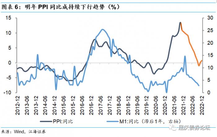 国内PPI将下行。国内来看,今年工业企业利润增速呈震荡下行趋势,企业进入主动去库存阶段,上行的PPI已与经济基本面背离,预计2022年PPI呈全年持续下行趋势。