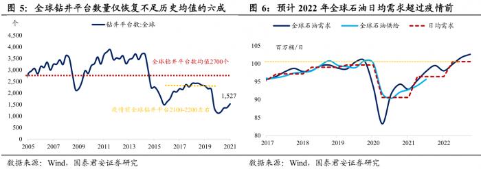 一是全球原油缺口能否能如期收窄。当前油价已经处于偏高位置,如果不见到供给或需求端大幅超预期,原油价格大幅回落的空间也不大,整体上对 2022 年油价走势的潜在压力还不能过度乐观。