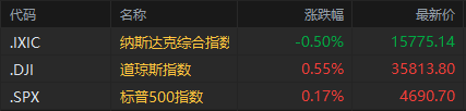 道指涨0.55%,标普500指数涨0.17%,纳指跌0.5%。