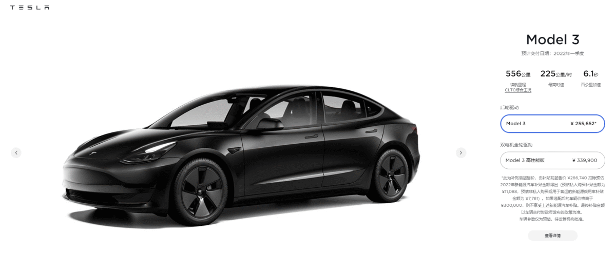 特斯拉中国官网显示,特斯拉Model 3此前后轮驱动普通版此前定价为25.09万元,目前上涨至25.5652万元,配置信息不变;特斯拉Model Y后轮驱动普通版此前定价为27.6万元,目前上涨至28.0752万元,配置信息不变。