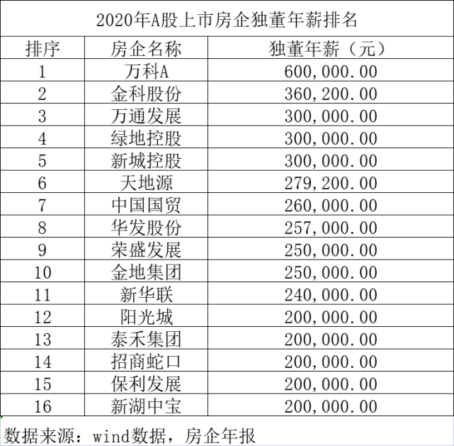 A股上市房企中,万科独董以60万年薪高居榜首,金科独董紧随其后,年薪达36.02万。