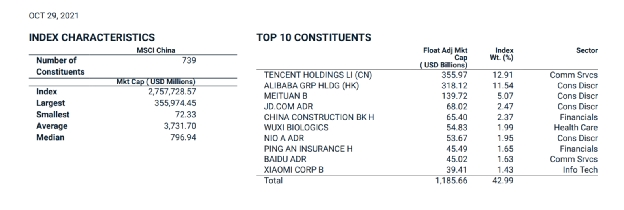 此外,截至10月29日的指数基本事实清单也显示,MSCI中国指数中阿里巴巴ADR也被换成了港股。
