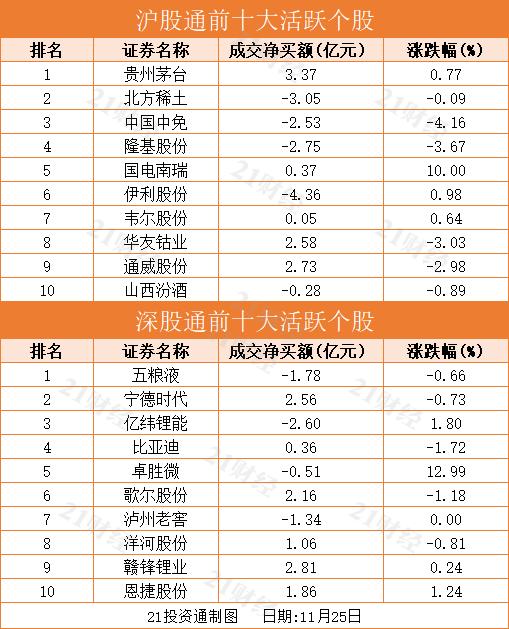 今日十大活跃个股方面,北向资金净买入贵州茅台、赣锋锂业、通威股份居前,分别获净买入3.37亿元、2.81亿元、2.73亿元。
