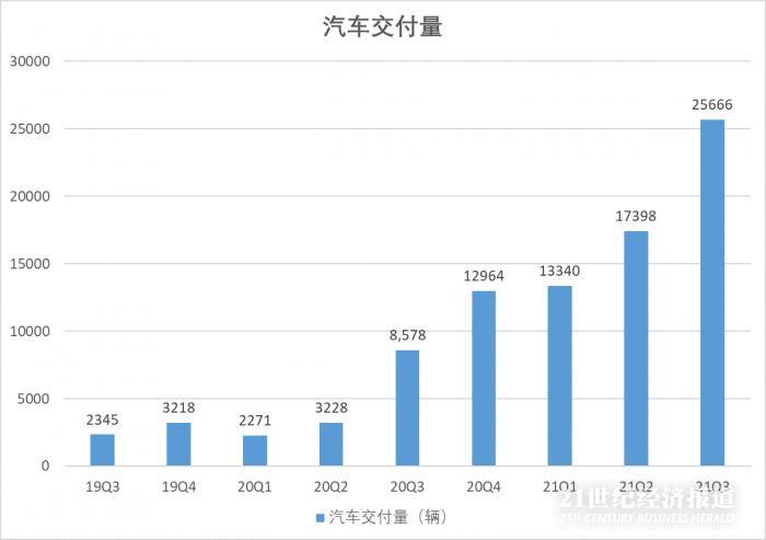 数据显示,小鹏汽车真正的发力点是在本季度,不仅是在营收数据上有所体现,在汽车交付量上更甚。在如今汽车行业面临芯片短缺问题的紧张时期,小鹏汽车不仅没有受此影响,反而在交付量上再次创下单季度新高,达到了25666辆,稳坐国内造车新势力交付量的头把交椅,这也是小鹏汽车本次营收大增的最主要来源。