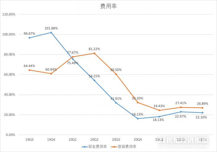 而本次净亏损扩大,则主要是体现在费用端上,本季度研发投入为12.64亿元,同比增长99%。对此,小鹏汽车在财报中表示研发费用大涨主要是由于新车型开发所致。而从其费用率上来看,却可以发现其表现得逐步平稳,营销费用率稳定在26%附近,研发费用率稳定在21%附近,这也证明了小鹏汽车如今的费用投入都已经在营收上有了明显体现。