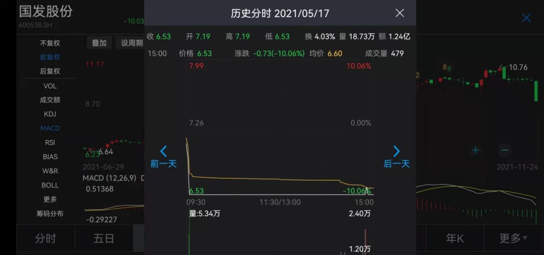 需要指出的是,这已经不是国发股份第一次闪崩跌停了。今年5月17日,公司股价几乎走出了跟24日一模一样的行情,同样是开盘不久便闪崩跌停,当日成交额达1.24亿元。