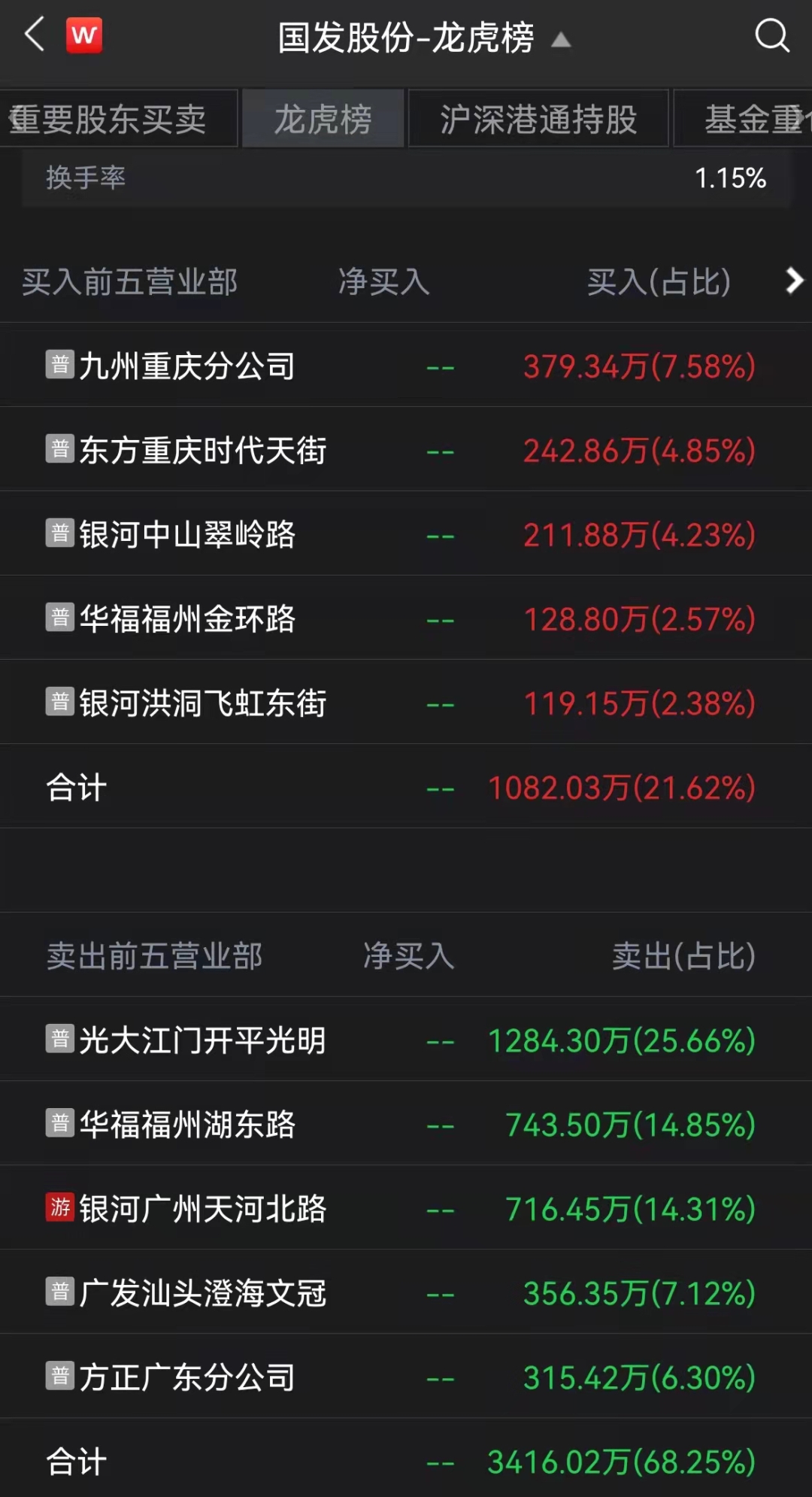 从国发股份盘后龙虎榜来看,买一到买五合计买入1082.03万元,卖一到卖五合计卖出3416.02万元。其中,在卖三席位上出现了游资盘踞的营业部身影,当日共卖出716.45万元。