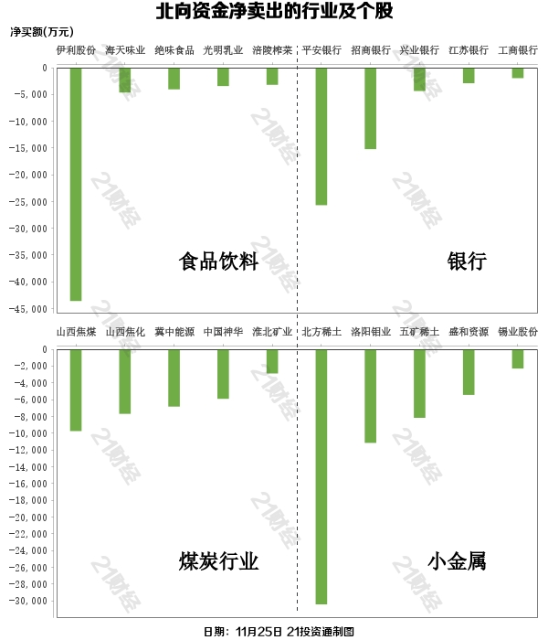 北向资金净卖出伊利股份(600887.SH)、北方稀土(600111.SH)、隆基股份(601012.SH)、亿纬锂能(300014.SZ)、平安银行(000001.SZ)居前。