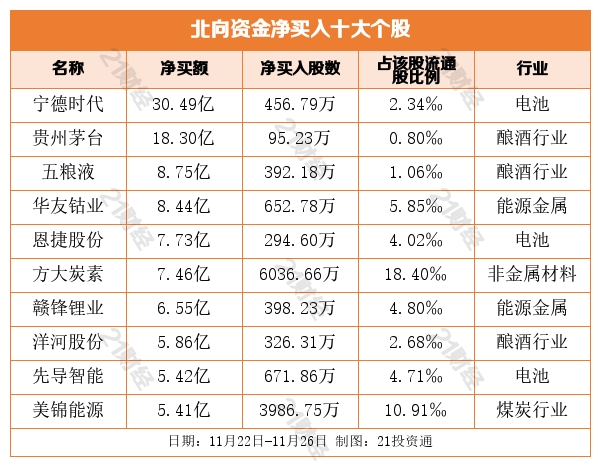 净买入宁德时代30.49亿元,净卖出伊利股份18.12亿元