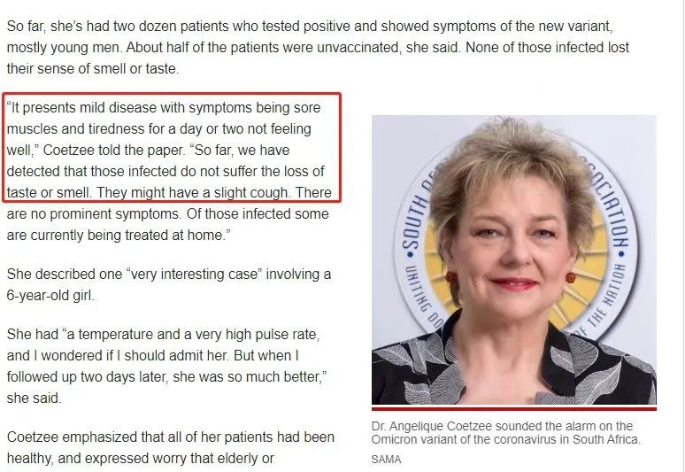 南非医学协会主席安吉丽克·库切表示,奥密克戎变异毒株的感染症状“不寻常但很轻微”。