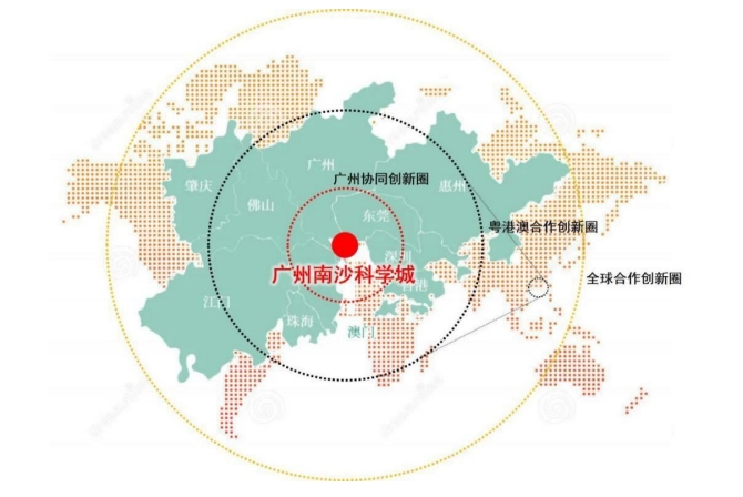 南沙科学城规划面积 99 平方公里,位于广州市南沙区,毗邻港澳,是粤港澳大湾区地理几何中心和大湾区东西岸交汇之地。在空间布局方面,南沙科学城按照“一体两翼三支点”的思路规划建设,按照“一核三圈”虚拟空间布局思路构建粤港澳大湾区全球合作创新网络。