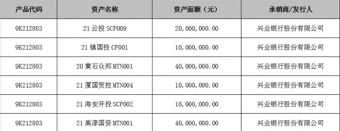 值得一提的是,该产品投资了兴业银行发行或承销的证券,分别是“21云投SCP009”、“21镇国投CP001”、“20黄石众邦MTN001”、“21厦国贸控MTN004”、“21海安开投SCP002”、“21高淳国资MTN001”。