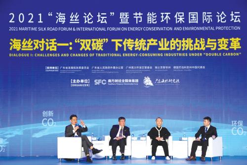 2021“海丝论坛”暨节能环保国际论坛中,多方探讨“双碳“目标下传统产业的挑战与变革(注:部分嘉宾线上接入)。资料图